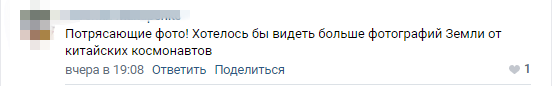 “照片太震撼了!想看更多的中国宇航员拍的地球照片。”