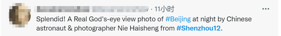 “璀璨!神舟十二号航天员兼摄影师’聂海胜拍摄的北京夜景才是真正的上帝视角’。”