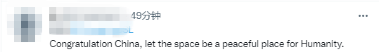 “祝贺中国,让太空成为人类和平的地方。”