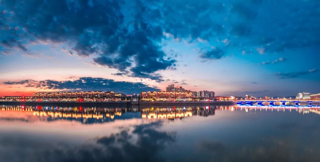 灯光环绕相连,河水交相辉映